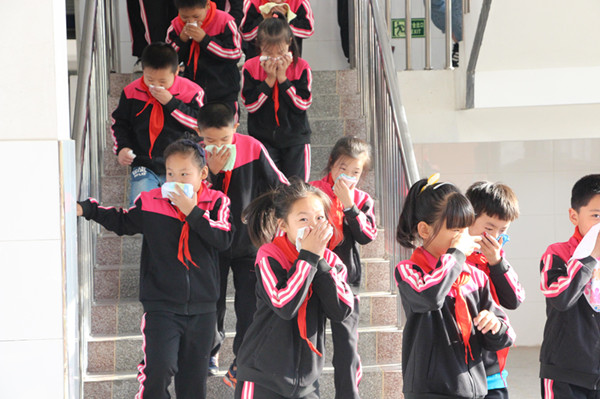 本次演练,由许福年校长任总指挥,各班班主任到场护航,确保每项工作安全有序地开展。下午3点35分,随着警报声的响起,各安全岗人员立即到达指定地点,抢险救护组人员立即赶赴现场,开展救援工作。各班班主任及上课教师带领学生弯着腰,捂住口鼻,沿着学校指定的疏散通道快速撤离,有序撤离到学校操场的安全地带,并迅速清点人数,向总指挥汇报。