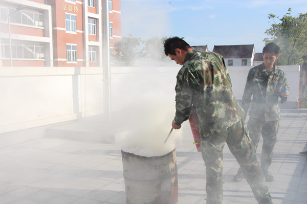 随后,镇消防队员给全校师生讲解了使用灭火器的方法,并现场示范灭火过程。